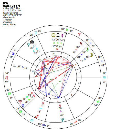 Natalna karta osobe karakteriše se Ascendentom u Lavu, sa Suncem u Biku u 10. kući u konjunkciji sa Merkurom i Severnim čvorom. Ova konfiguracija ukazuje na izuzetno ambicioznu osobu usmerenu ka karijeri i sticanju materijalnih dobara.